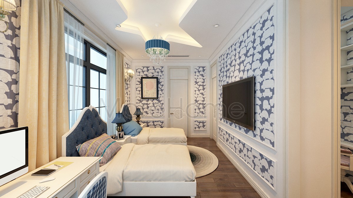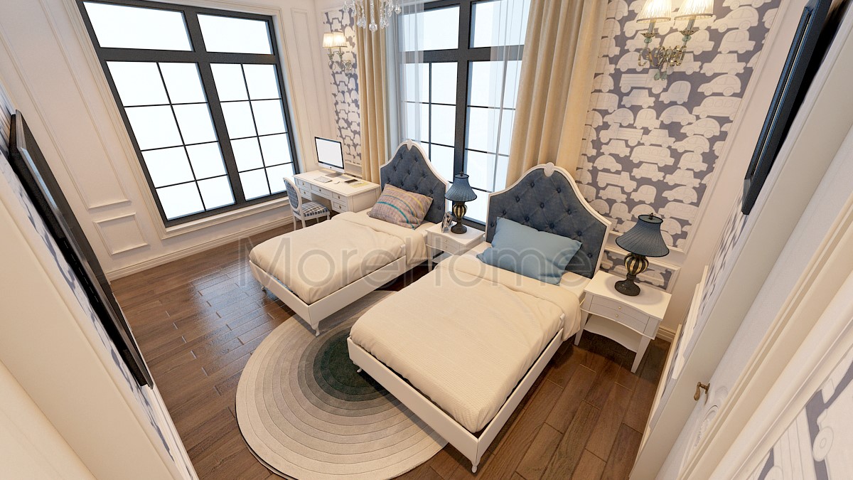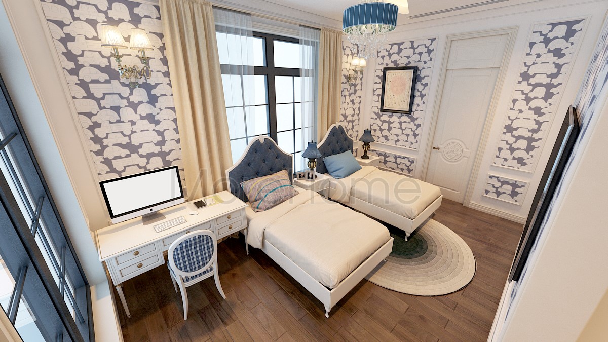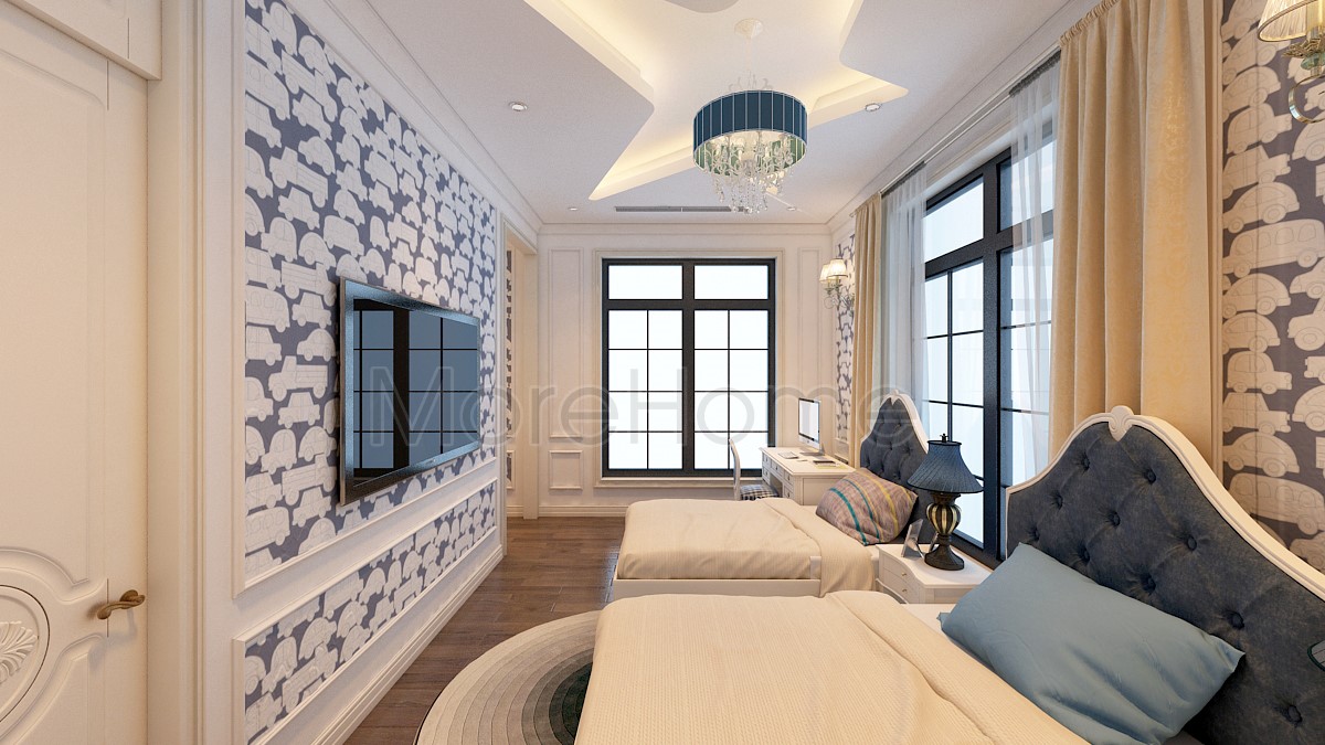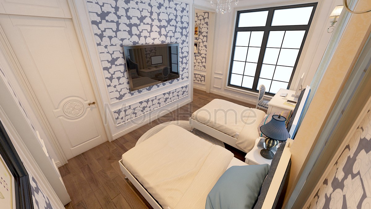Thiết kế nội thất giường ngủ đôi khách sạn tân cổ điển