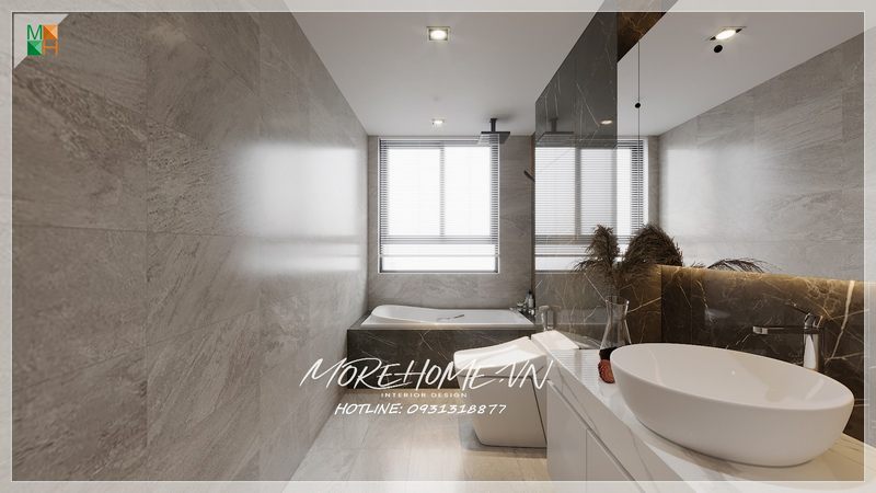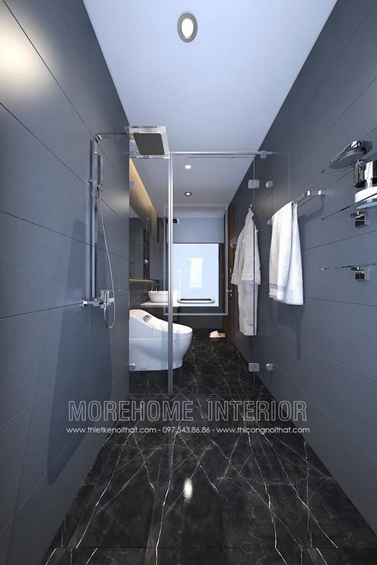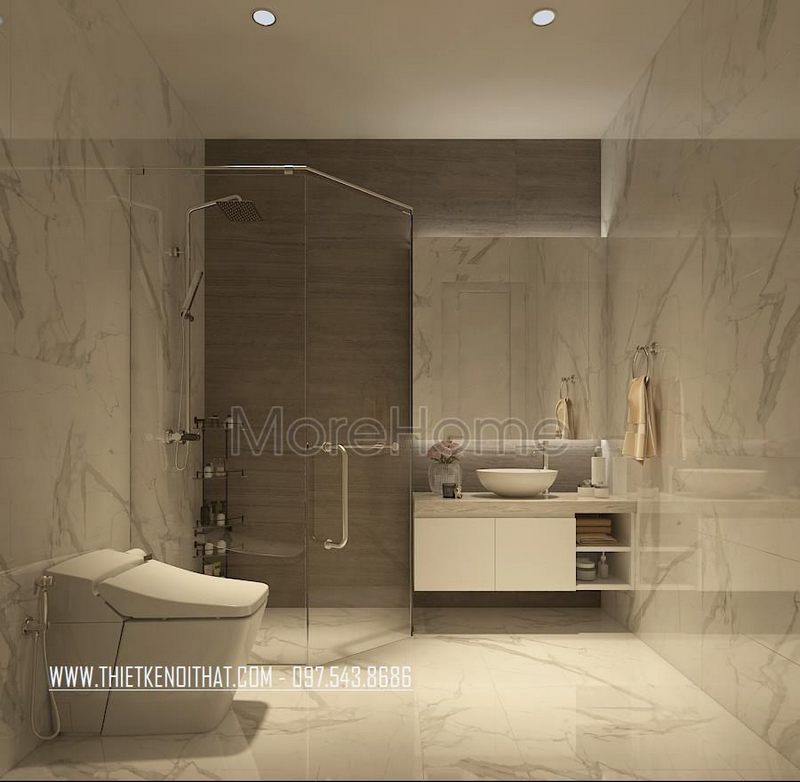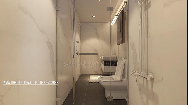 Phòng tắm thiết kế với phong cách hiện đại với tông màu sáng không gian rộng hơn tạo sự thoải mái khi sử dụng phòng cho gia chủ.