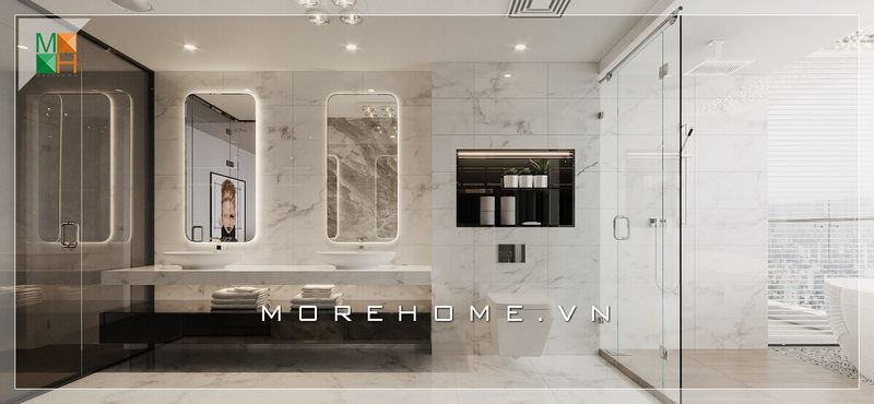 Thiết kế nội thất phòng tắm vách kính mang phong cách tân cổ điển, sáng tạo cho chung cư, biệt thự, nhà phố.