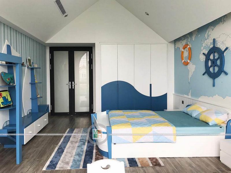 Phòng ngủ với diện tích không được rộng thiết kế nội thất khoa học, hợp lí mang tới sử thoải mái tiện nghi nhất