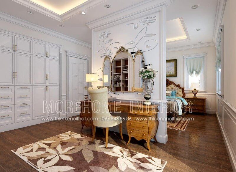 Mẫu bàn trang điểm tân cổ điển bằng gỗ óc chó đẹp cho phòng ngủ biệt thự