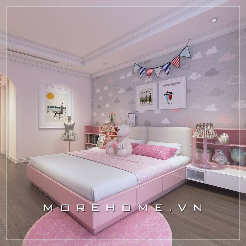 Trang trí phòng ngủ bé gái hiện đại, gam màu hồng nữ tính được gia chủ lựa chọn nhiều ở không gian này