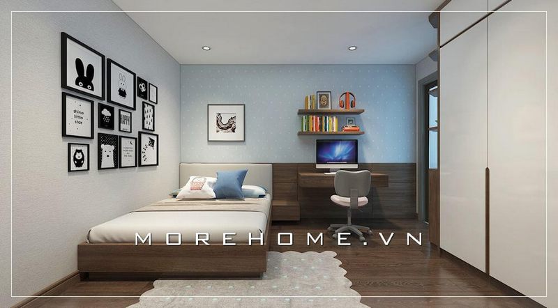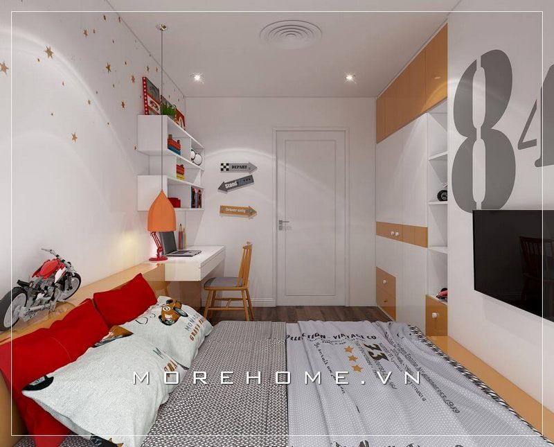 Nội thất phòng ngủ con được thiết kế hiện đại năng động với gam màu sáng năng động