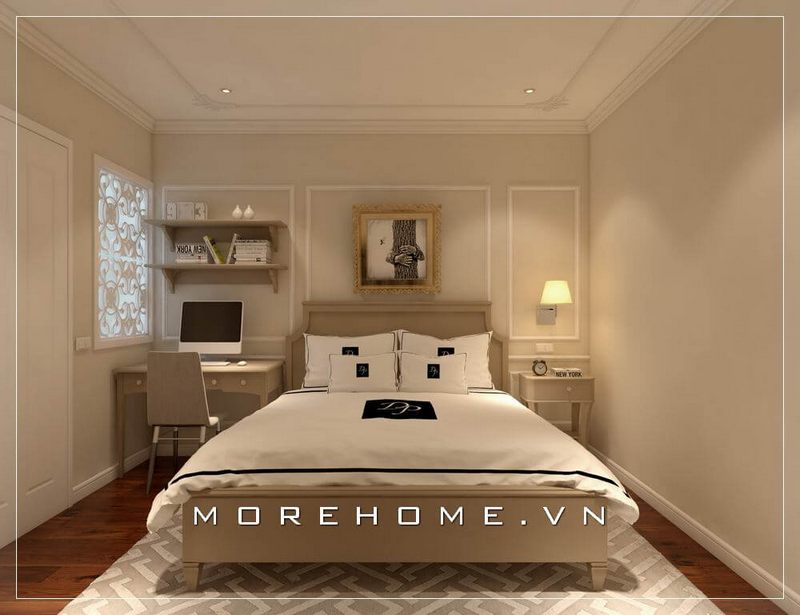 Sắc trắng tinh tế và lối thiết kế độc đáo của phòng ngủ biệt thự, nhà phố được nhiều gia chủ lựa chọn bởi sự nhẹ nhàng, trẻ trung và tinh tế.