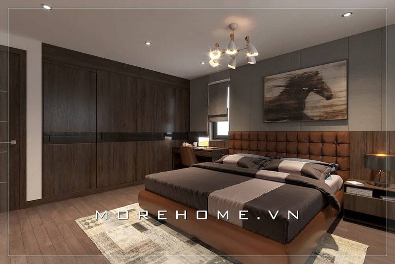 Thiết kế phòng ngủ với nội thất giường bọc sofa đẹp gam màu nâu sang trọng