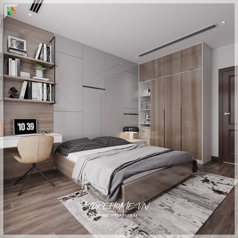 Giường ngủ chung cư hiện đại gỗ công nghiệp kết hợp tap đầu giường tiện dụng, ngăn nắp hơn
