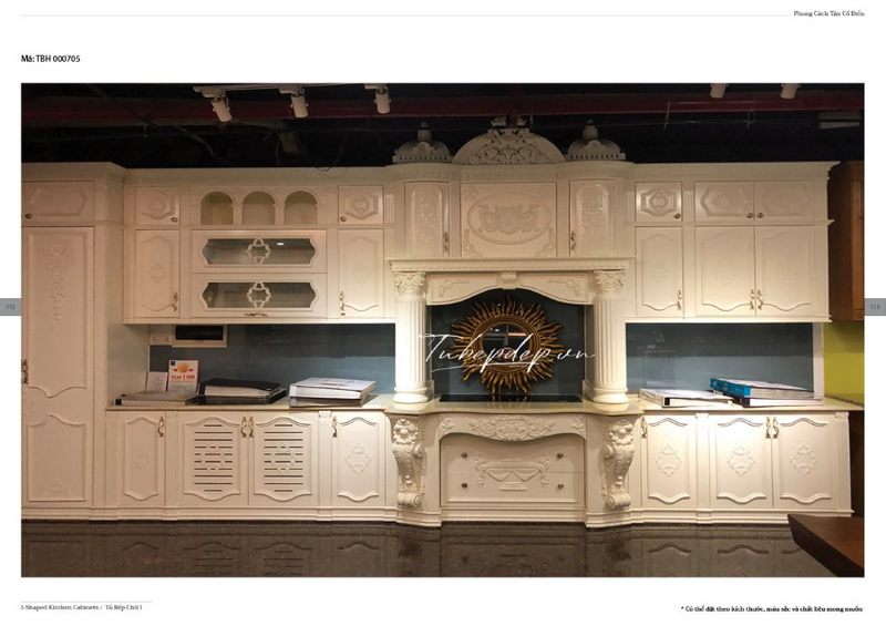 Thiết kế tủ bếp đẳng cấp hoàng gia với thiết kế tân cổ điển màu trắng tinh tế ấn tượng từ các họa tiết tỉ mỉ chạm khắc từ các nghệ nhân MoreHome