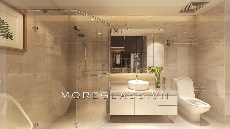 Mẫu thiết kế nhà tắm kính cao cấp với kính cường lực trong suốt giúp tạo nên vẻ đẹp tinh tế, sang trọng mà không làm cho phòng tắm nhỏ cảm giác bí bách.